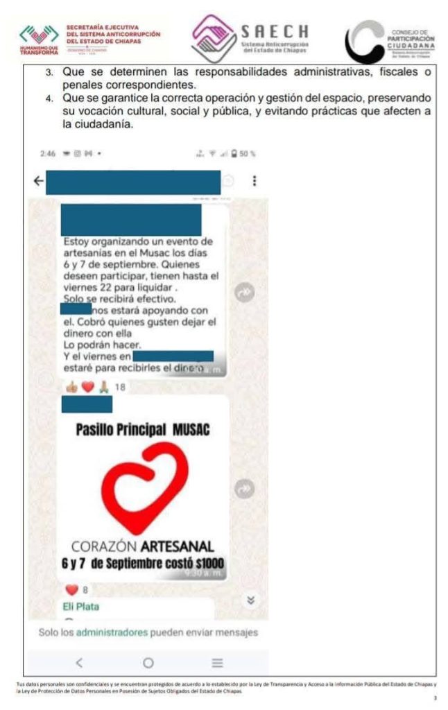 Los firmantes del pronunciamiento ciudadano insistieron en que el MUSAC es un espacio cultural y no un mercado, y llamaron al Consejo Estatal para la Cultura y las Artes (CONECULTA) y a las autoridades culturales a revisar la gestión de la actual directora, Blanca Ricci Diestel, así como a establecer límites claros para evitar el uso comercial del museo.