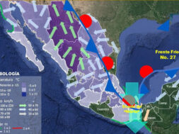 Así mismo, la masa de aire ártico asociada al frente empezará a modificar sus características térmicas en el transcurso del día; sin embargo, mantendrá el evento de “Norte” con rachas de viento de 70 a 90 km/h en Veracruz (sur) e Istmo y Golfo de Tehuantepec, durante la mañana.