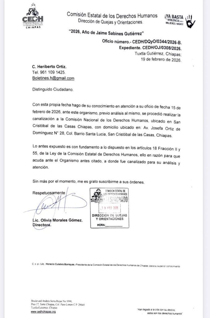 Presentaron pruebas documentales de la omisión de la CEDH al negar la asistencia jurídica a esta comunidad en situación de vulnerabilidad, misma que le fue solicitada en apego a la obligatoriedad de su marco de responsabilidad.