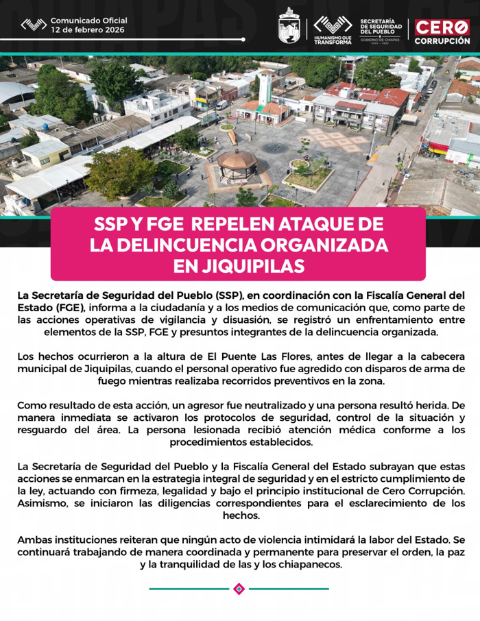 La Fiscalía estatal adelantó que en las próximas horas ampliará la información sobre los resultados de los operativos desplegados en la región. Mientras tanto, la presencia de fuerzas estatales y federales se mantiene en distintos puntos de Jiquipilas y municipios aledaños.