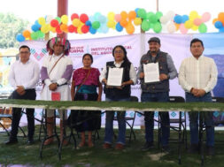 Estuvieron presentes en el acto protocolario la presidenta municipal de Aldama, Catarina Peŕez Ruiz; el director de Infraestructura Hidráulica de la Secretaría de Infraestructura, Roger Urbina Córdova; y Lorenzo Morales Patishtán, agente rural del paraje Chayomté.