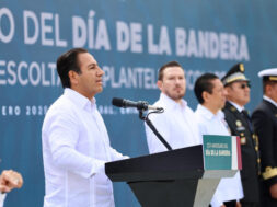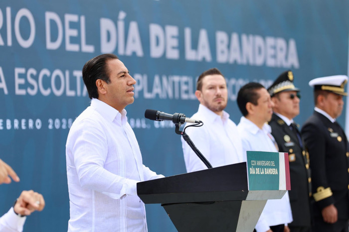 “Hoy celebramos un aniversario más de nuestro símbolo nacional, que nos da identidad, fuerza y espíritu libertario. Sus colores representan la trascendencia de nuestra historia, desde el mundo prehispánico hasta la actualidad, momentos en los que llevamos en el corazón a quienes nos han dado patria, libertad e independencia”, expresó el mandatario ante la presencia del comandante de la VII Región Militar, Alejandro Vargas González; el comandante de la Región Aérea del Sureste, Edgar Salvador Rodríguez Franco; el comandante de la 31 Zona Militar, Román Villalvazo Barrios, y el coordinador estatal de la Guardia Nacional en Chiapas, Antonio Hernández Tejeda.